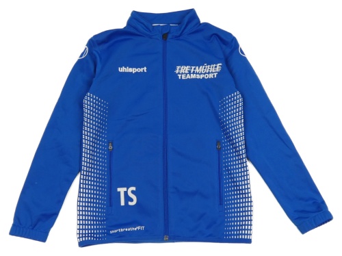 Modrá športová prepínaci funkčná mikina s nápisom Uhlsport