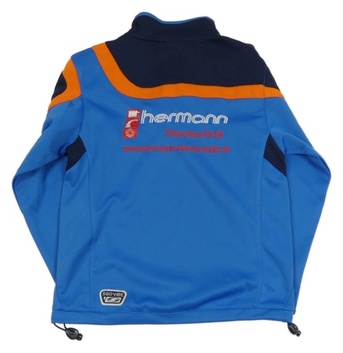 Modro-tmavomodro-oranžová športová mikina s výšivkou