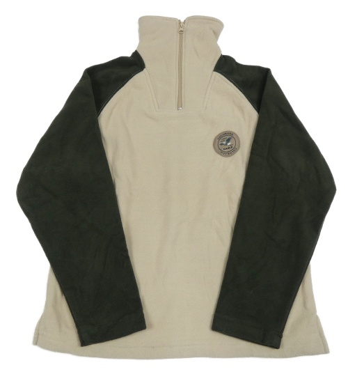 Béžovo-zelená fleecová mikina s komínovým golierom a nášivkou