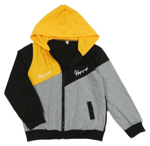 Čierno-žlto-sivá prepínaci mikina s nápisom a kapucňou