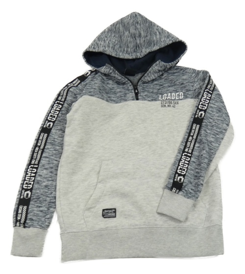 Tmavomodro-melírovano-sivá mikina s nápisom a kapucňou Chapter young