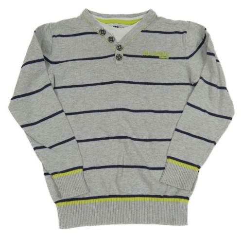 Sivo-tmavomodrý pruhovaný melírovaný sveter s nápisom C&A