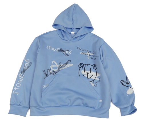 Svetlomodrá mikina s medvěďom s nápismi a kapucňou Shein