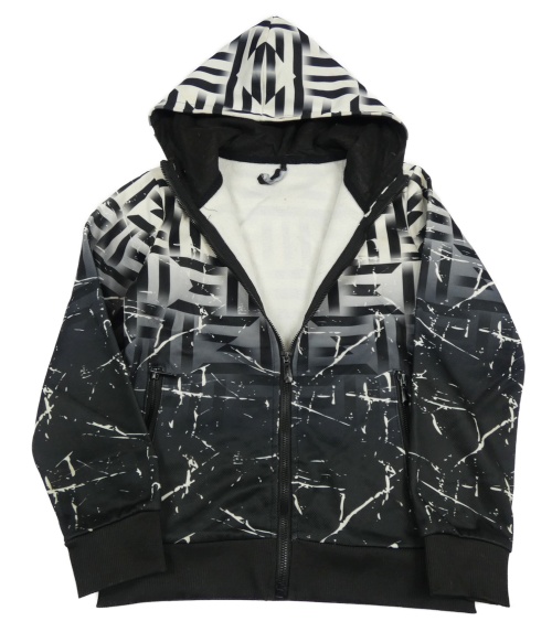 Sivo-čierna vzorovaná prepínaci mikina s kapucňou