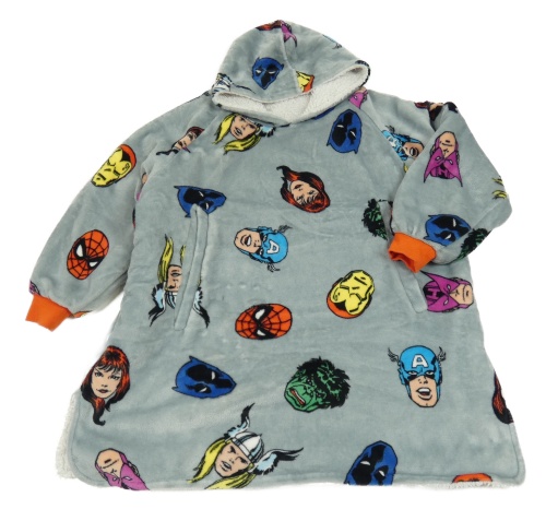 Sivá chlpatá zateplená oversize mikina s Marvel a kapucňou marvel