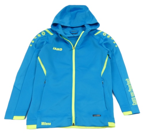 Tyrkysová športová funkčná prepínaci mikina s logom a kapucňou jako