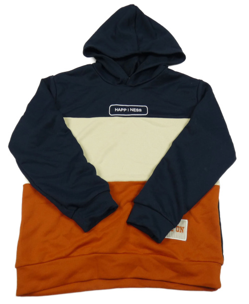 Tmavomodro-smetanovo-medová mikina s nápismi a kapucňou SHEIN