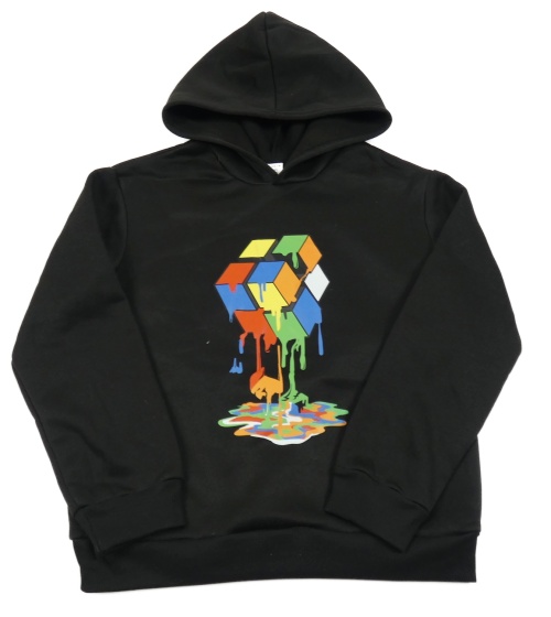 Čierna tepláková mikina s Rubikovou kostkou a kapucňou SHEIN