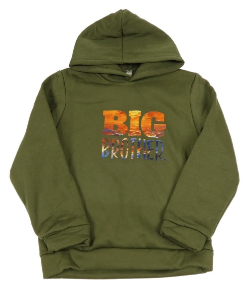 Khaki mikina s nápisom a kapucňou