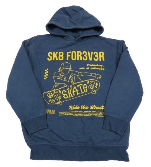Tmavomodrá oversize mikina so skateboardistou a nápismi a kapucňou George