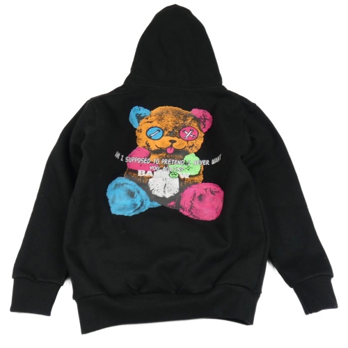 Čierna mikina s farebným medvedíkom a kapucňou