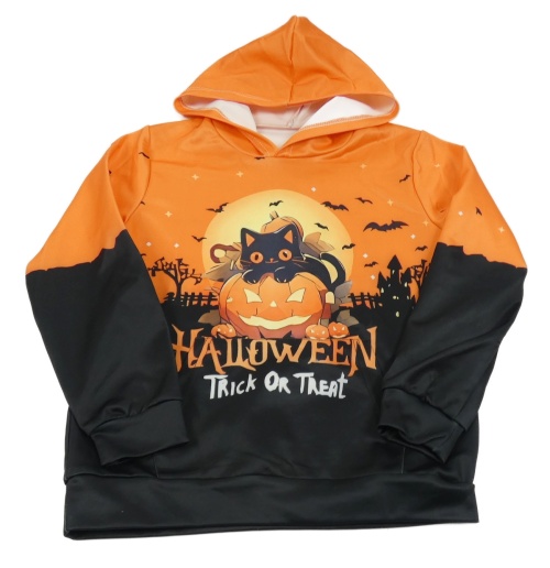 Oranžovo-čierna mikina s tekvicou s mačkou a kapucňou
