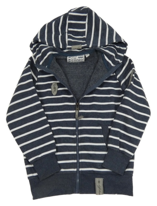 Tmavomodro-biela pruhovaná prepínaci mikina s nášivkou a kapucňou Off Shore