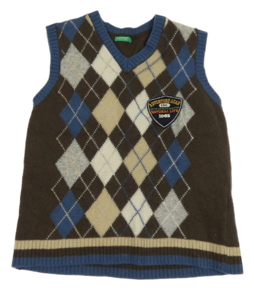 Hnedo-sivo-modrá károvaná vlnená vesta Benetton