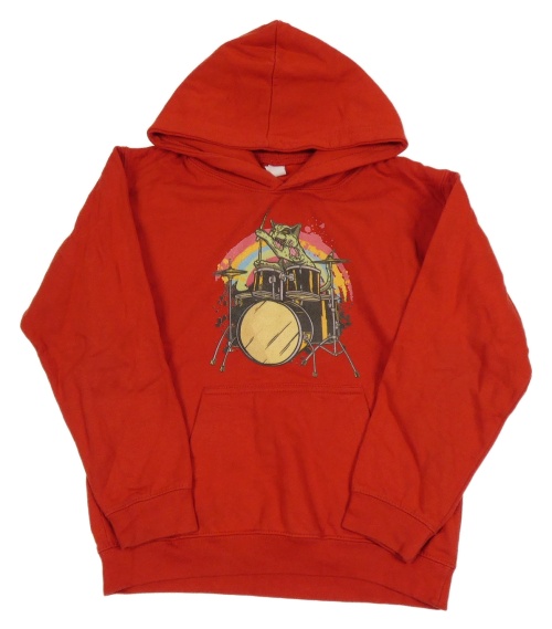 Červená mikina s bicími a kapucňou