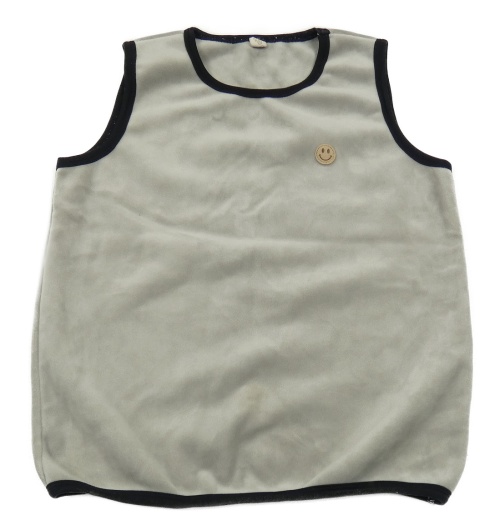 Sivá plyšová vesta so smajlíkom a černými lemy