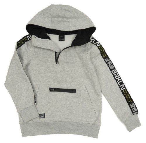 Sivá melírovaná mikina s čierným pruhom a kapucňou Chapter young