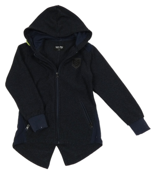 Čierno-modrá melírovaná prepínaci mikina s nášivkou a kapucňou