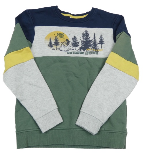 Kaki-tmavomodro-sivá mikina s cyklistou a stromami Kids
