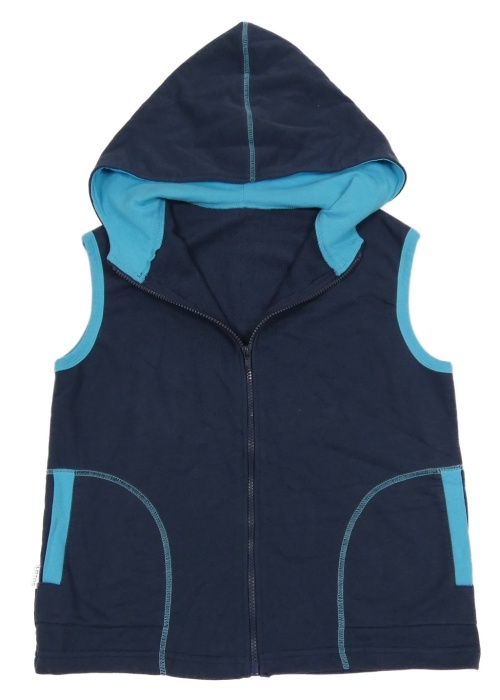Tmavomodrá tepláková prepínaci vesta s kapucňou