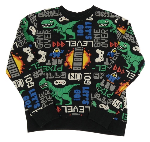Čierna mikina s dinosaurami a ovladači a nápismi OVS
