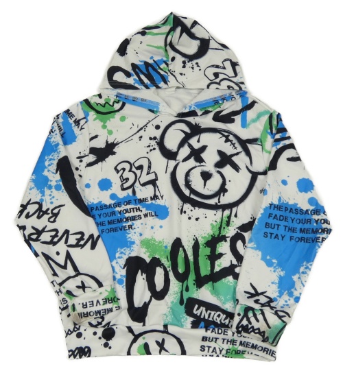 Bielo-farebná mikina so vzorom a kapucňou Shein