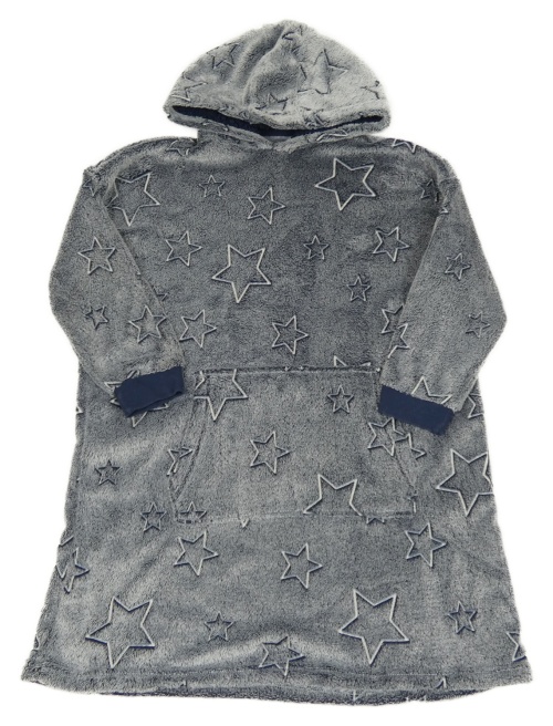 Sivo-tmavomodrá plyšová oversize domáceá mikina s hviezdami a kapucňou George