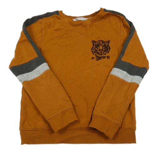 Hnedá mikina s sivým pruhom a tigrom H&M