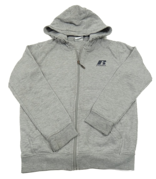 Sivá melírovaná prepínaci mikina s nápisom a kapucňou Russell