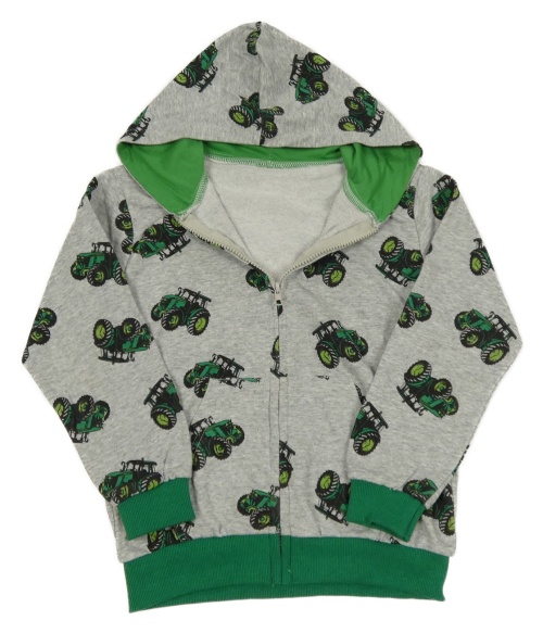 Sivo-zelená prepínaci mikina s traktormi a kapucňou