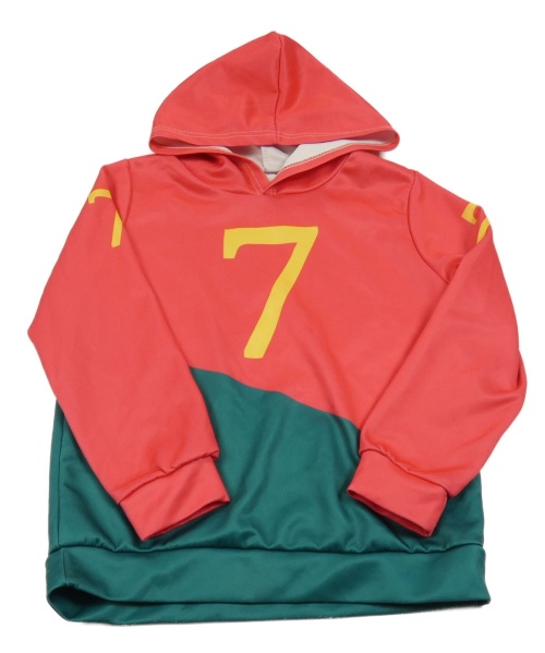 Červeno-zelená mikina s číslom a kapucňou