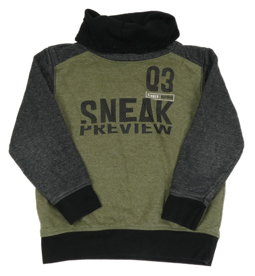Kaki-tmavošedo-čierna melírovaná mikina s nápismi a číslom a komínovým golierom YIGGA
