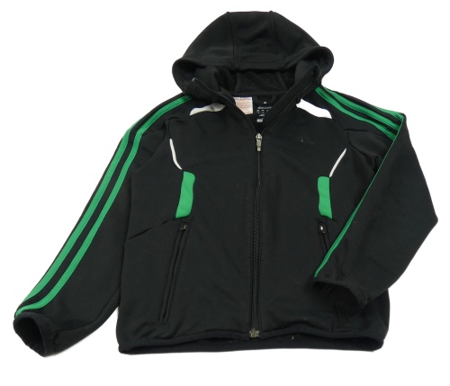 Čierna športová prepínaci mikina so zelenymi pruhmi a kapucňou Adidas