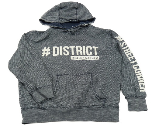 Tmavomodrá vzorovaná mikina s nápisom a kapucňou Yigga