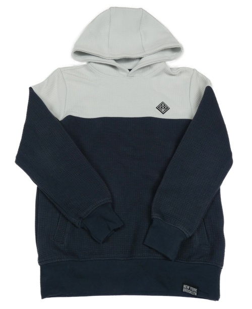 Tmavomodrošedo-biela kostkovaná//žebrovaná mikina s nášivkou a kapucňou Chapter young