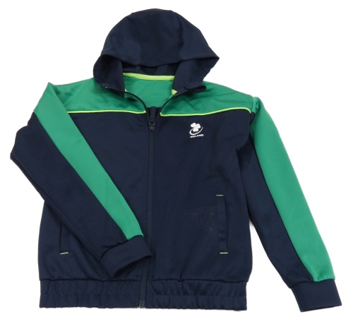 Tmavomodro-zelená športová prepínaci mikina s potlačou a kapucňou