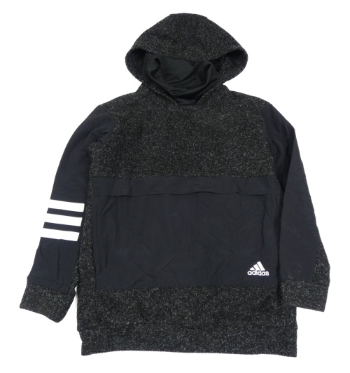 Čierna melírovaná pletená mikina s šusťákem a kapucňou Adidas