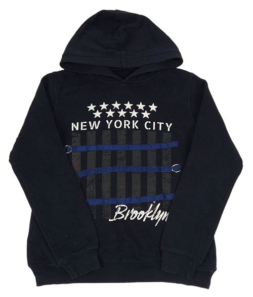 Tmavomodrá mikina s vlajkou a nápismi a kapucňou