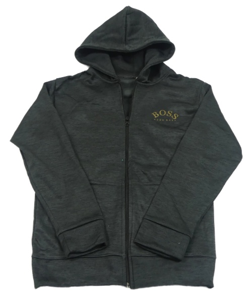 Antracitová melírovaná športová mikina s nápisom a kapucí Hugo Boss