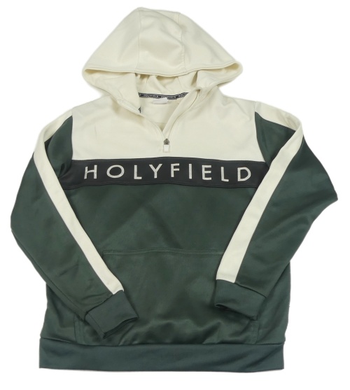 Tmavokhaki-čierno-smotanová športová mikina s logom a vreckom a kapucňou HOLYFIELD