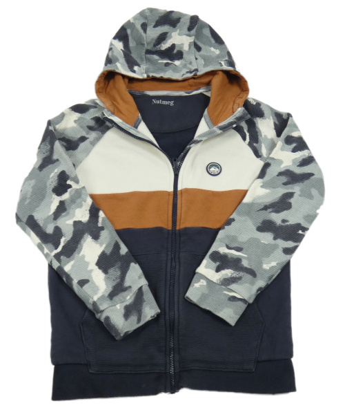 Tmavošedo-hnedo-smotanová prepínaci mikina s army rukávy a kapucňou Nutmeg