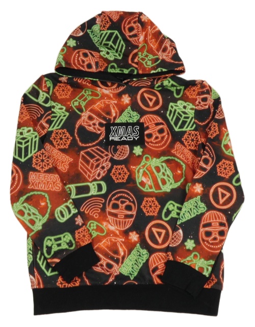 Čierno-červeno-zelená mikina s vánočními obrázky a kapucňou George