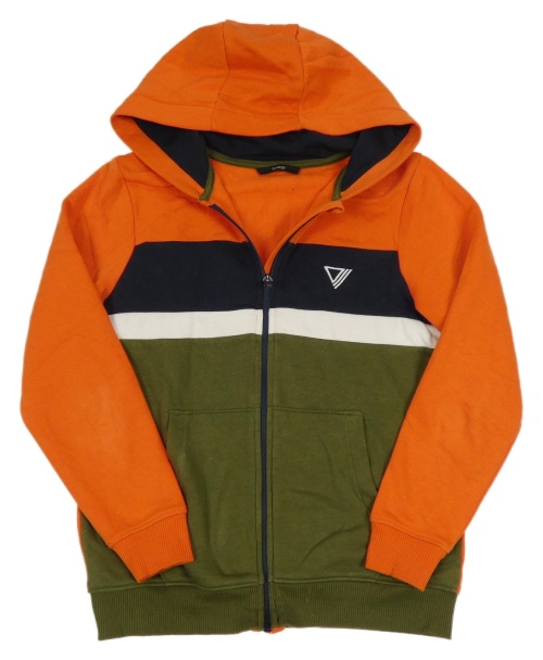 Tehlovo-kaki-tmavomodrá prepínaci mikina s výšivkou a kapucňou George