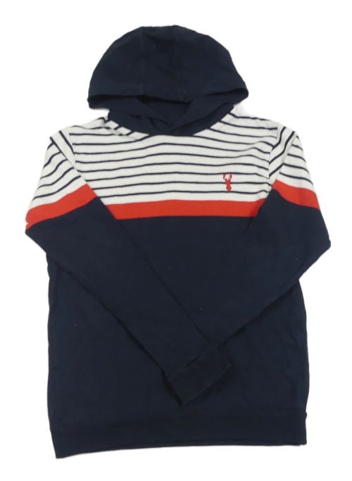 Tmavomodro-bielo-červená mikina s pruhmi a kapucňou Next
