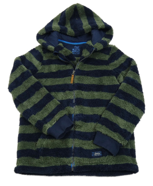 Kaki-tmavomodrá pruhovaná chlpatá prepínaci mikina s kapucňou Joules