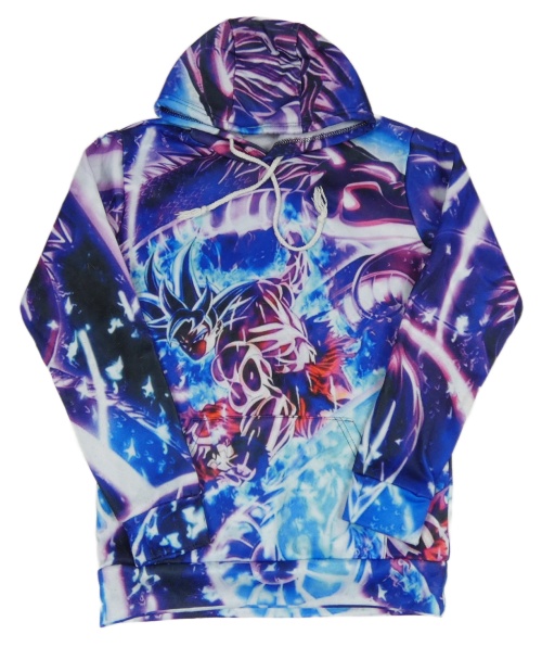 Pestrá vzorovaná mikina s potlačou a vreckom a kapucňou