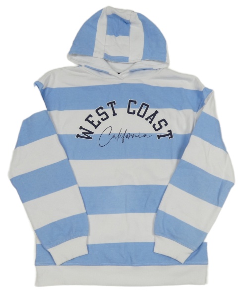 Modro-biela pruhovaná mikina s nápisom a kapucňou Primark
