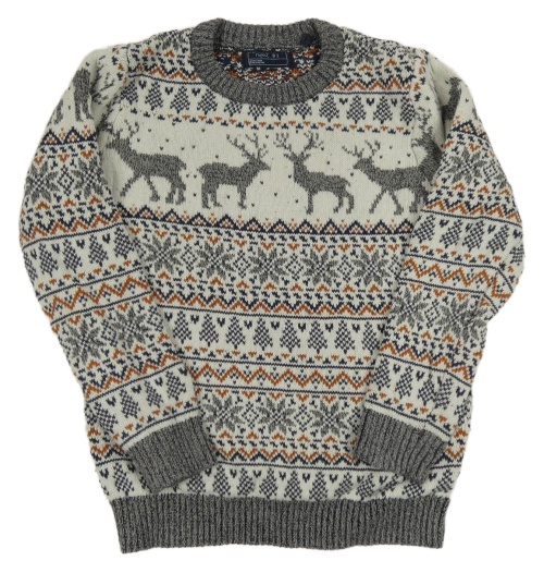 Bielo-sivo-melírovaný sveter so sobmi a norským vzorom Next