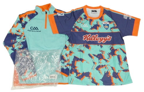 Nové - 2set - Tyrkysovo-tmavomodro-neónově oranžová športová mikina so vzorem + tričko