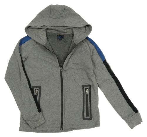 Sivá melírovaná thermo prepínaci mikina s čierno-modrým pruhom a kapucňou alive